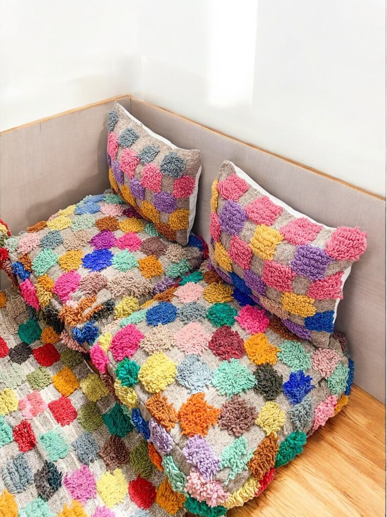 طقم جلوس مغربي مصنوع يدويًا - سجادة من الصوف الطبيعي 100%